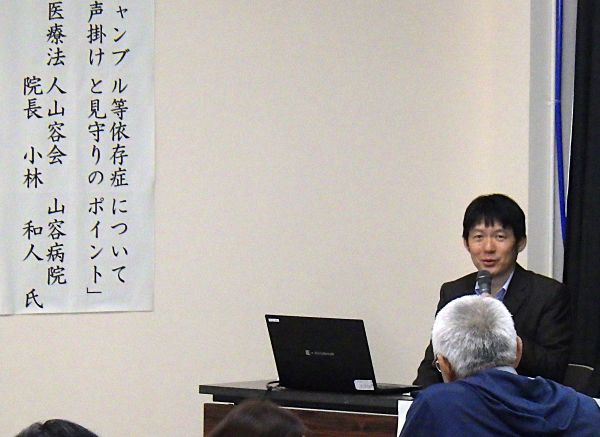 この研修は地域の見守り体制の強化を目的とした研修です。私は「ギャンブル等依存症について-声掛けと見守りのポイント」と題して講演しました。